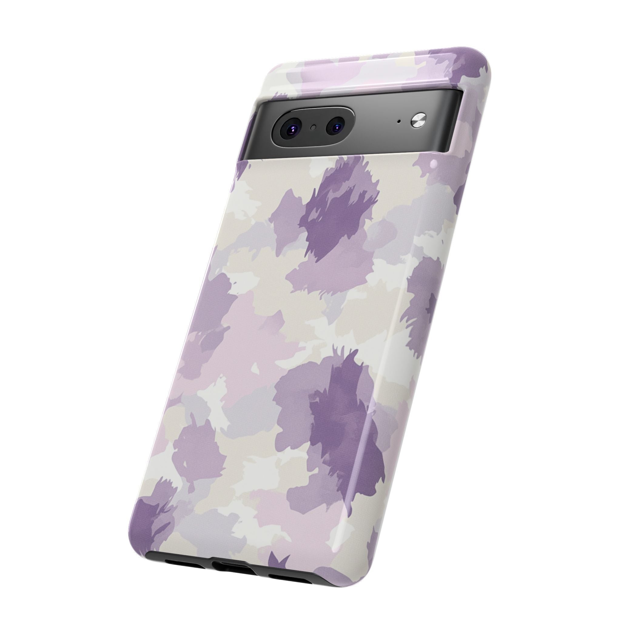 Introducing a stylish, durable phone case that blends functionality with modern design. This phone case features a soft, muted purple and cream floral pattern, perfect for adding a touch of elegance to your everyday essentials. Whether you’re heading to work, out with friends, or enjoying a leisurely day at home, this case is designed to protect while keeping your style intact. Ideal for fashion-forward adults, it makes a thoughtful gift for birthdays, holidays, or any special occasion where you want to show someone you care. The case not only enhances your phone's appearance but also provides dependable protection against drops and daily wear, making it an essential accessory for anyone looking to stay both chic and safe.